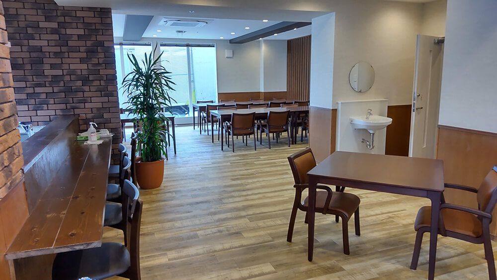 食堂 兼 共用スペース①◎お食事は治療食・きざみ・ミキサー食など個別対応を提供いたします。
